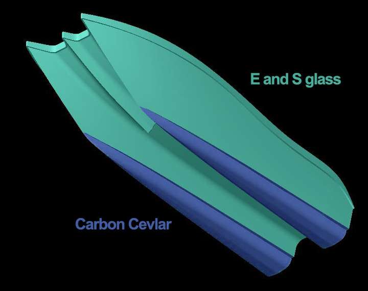- Construction*: Epoxy, Carbon Cevlar Hybrid, combined with E and S glass