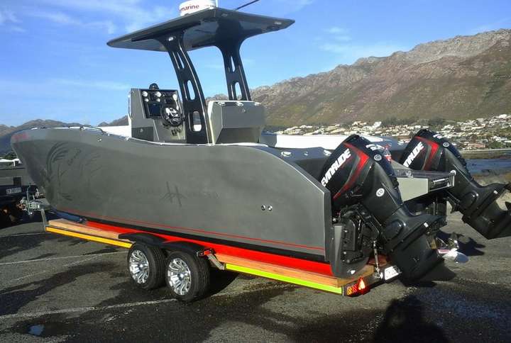 - Standard Equipment: 2 x 90HP Evenrude E-Tech Motors, Stainless steel trailer, Raymarine VHF, Raymarine MFD 9”, Deck wash.